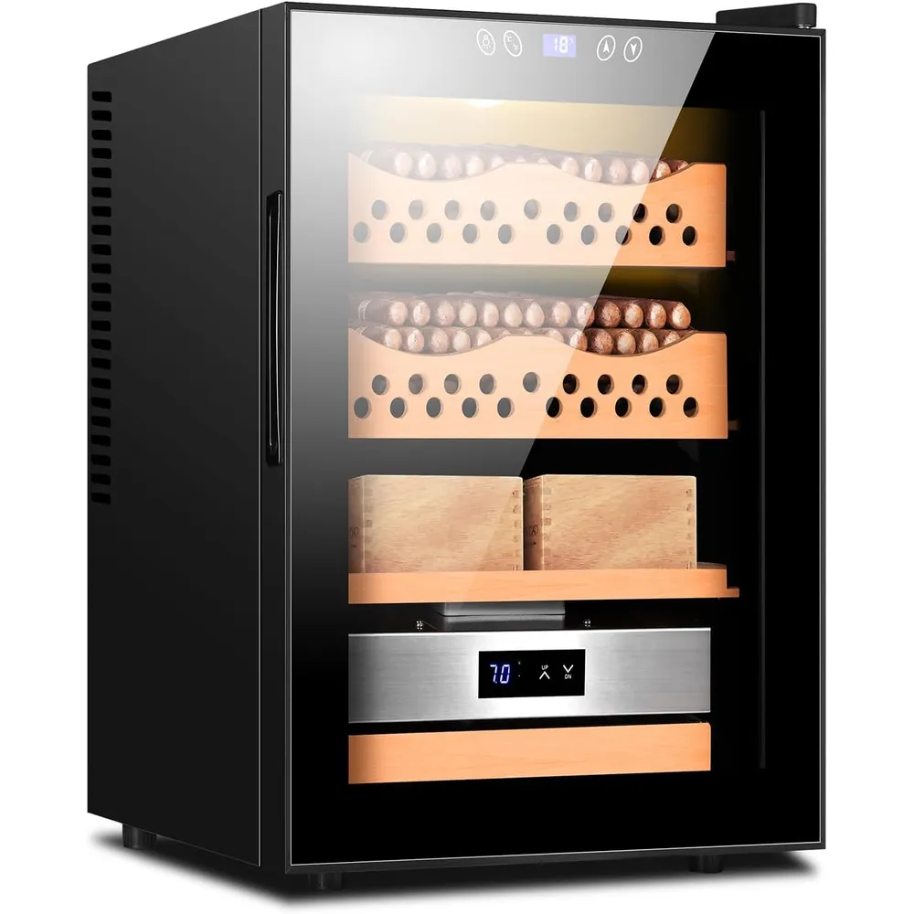 Electric Cigar Humidors 50L Temperature & Humidity Controllable Cigar Cabinet with Cedar Wood 3 Layers Gifts for Men (3 Layers 200 Capacity)