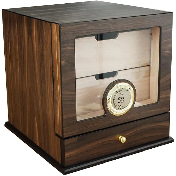 Luca Humidor Cabinet Rich Brown Walnut Finish Large Size, Cigar Storage for 80-100 Cigars, Digital Hygrometer, Spanish Cedar, Hydro System Humidor Cabinet, Accessory Drawer, PEG System