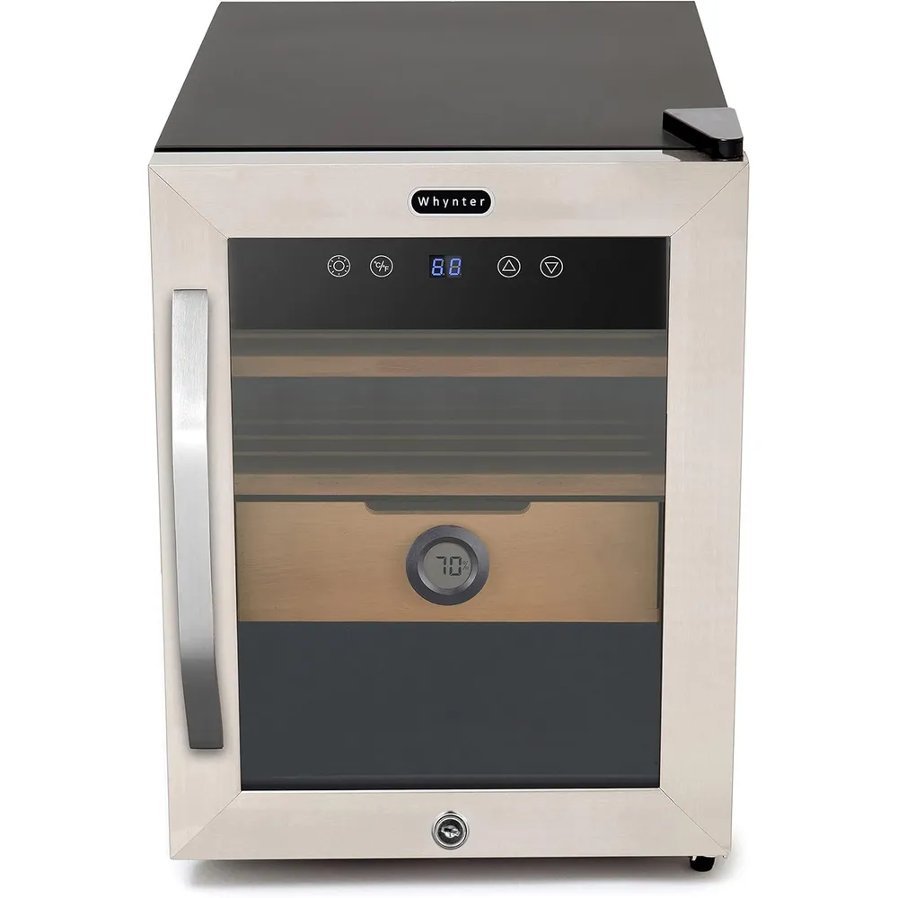Whynter CHC-123DS Cigar Humidor, 1.2 cu ft, Stainless Steel trimmed glass door with sleek black cabinet