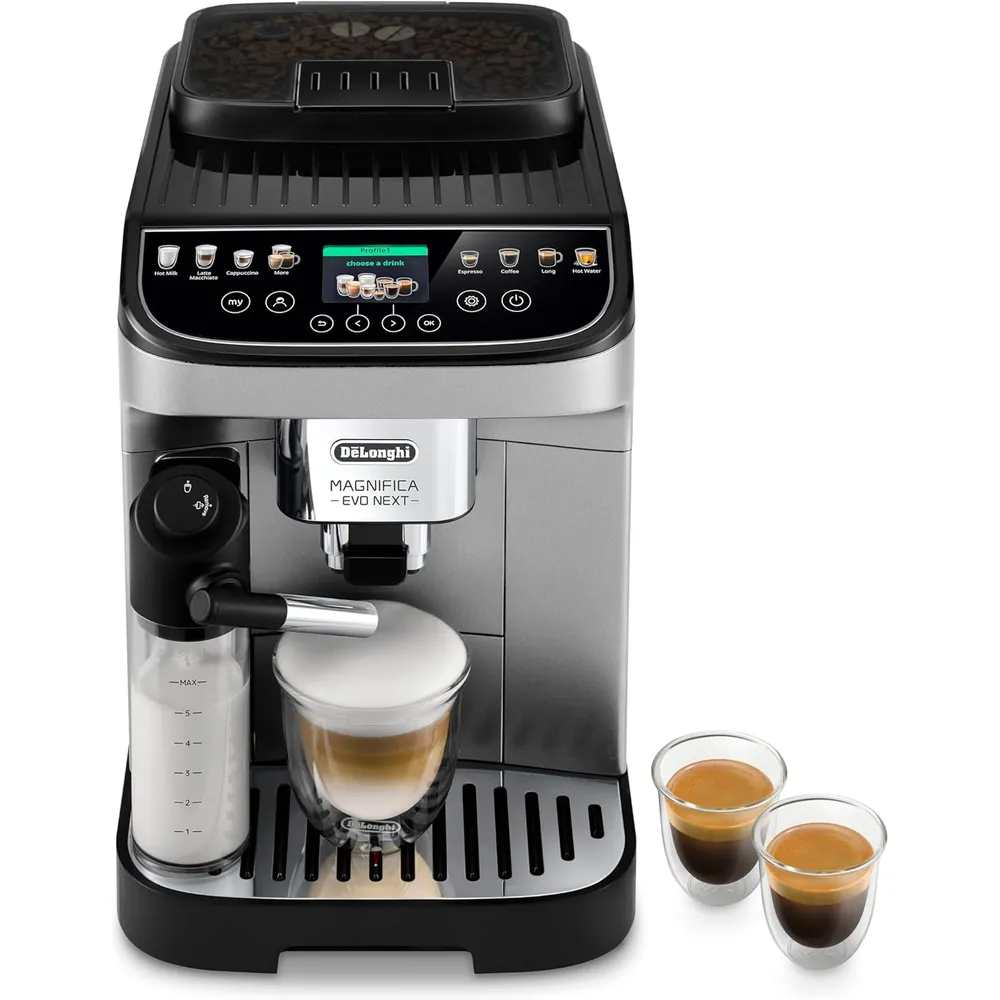 De’Longhi Magnifica Evo Next Fully Automatic Espresso Machine – Programmable Coffee Maker with Grinder and Milk Frother – Hot & Cold Brewer for Espresso, Latte, Cappuccino, Americano, Tea and More