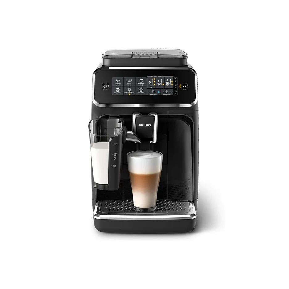 Philips 3300 Series Fully Automatic Espresso Machine – 6 Drinks, Modern Colour Touch Screen Display, LatteGo Milk System, SilentBrew, 100% Ceramic Grinder, AquaClean Filter, Black Chrome (EP3347/90)