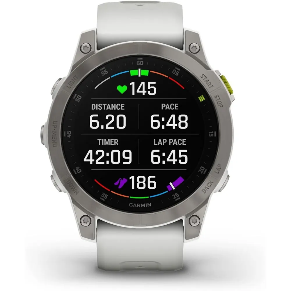 Garmin epix Gen 2, Premium active smartwatch, Health and wellness features, touchscreen AMOLED display, adventure watch with advanced features, white titanium