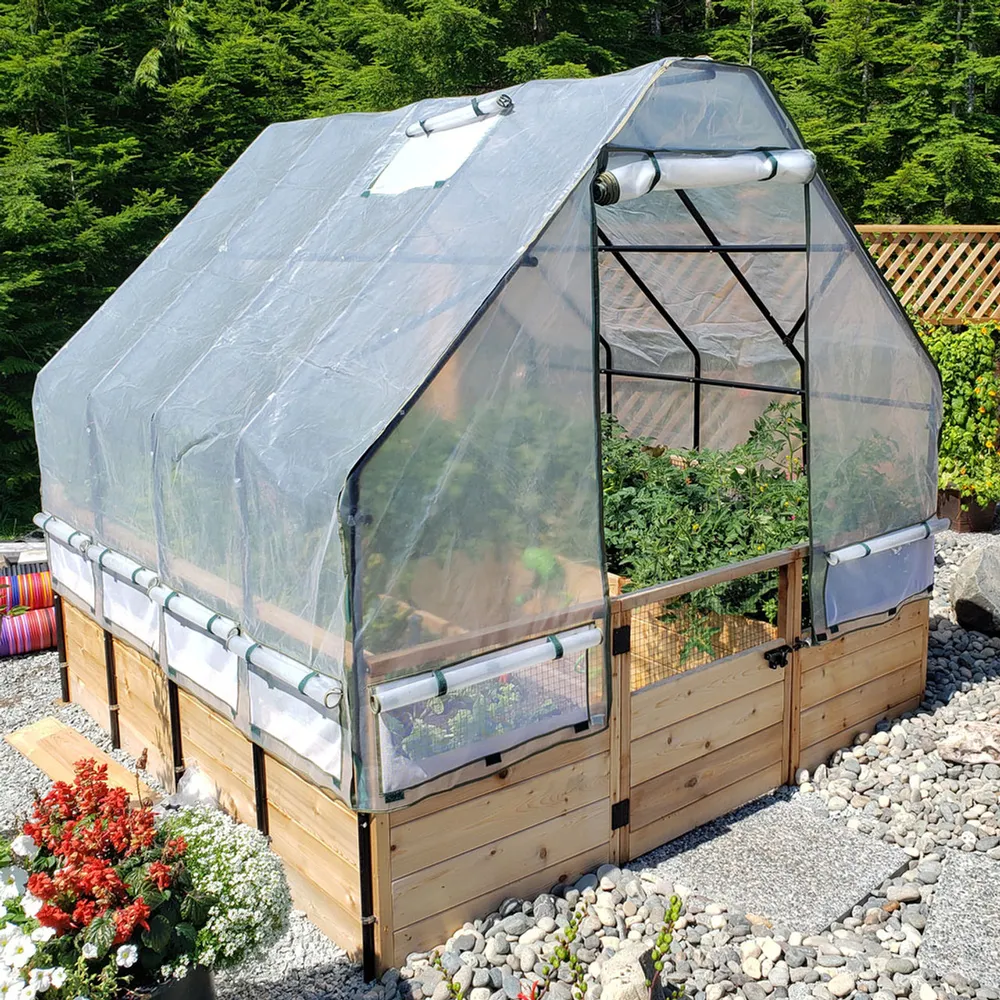 Cedar Complete Raised Garden Bed Kit with Greenhouse Cover 8′ x 8′