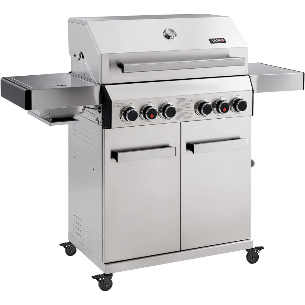 TAINO Platinum 3+1 or 4+2 Gas Barbecue Rotating Spit Complete Stainless Steel New Premium Series 2019 BBQ Grill Trolley 3 Burner Side Cooker Piezo Ignition