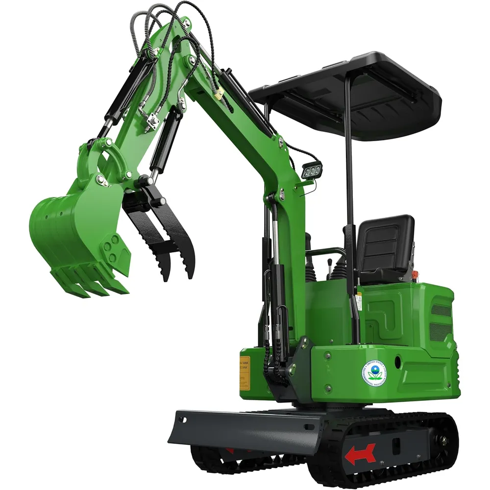 Domestic Gasoline Mini Excavator for Fathers Day, 1.2 Tons Crawler Digger with 13.5 HP B&S Engine, Hydraulic Thumb Clamp and Buckets, Work for Farm,Garden,Park,Construction Landscaping (Green1)