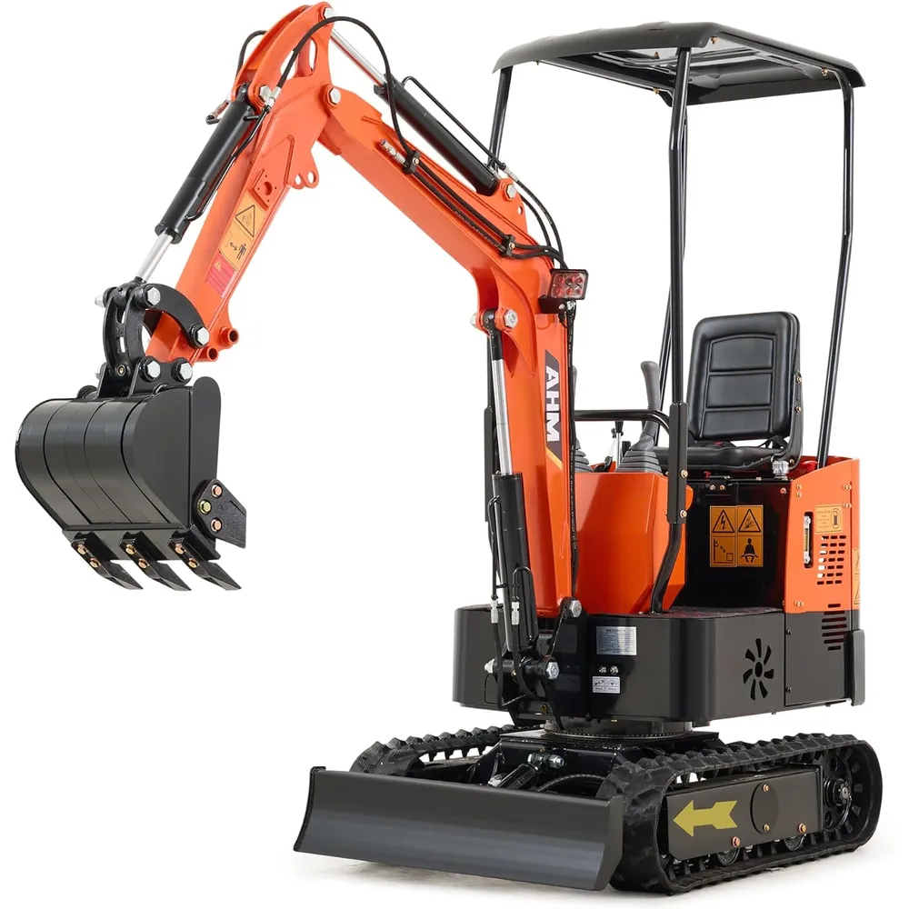 AHM Mini Excavator Machine, 1 Ton Mini Crawler Excavator with 13.5 hp EPA Certified Engine & All-Terrain Tracks, Trench Digger with Canopy & Adjustable Seat for Garden Farm Park Construction Site