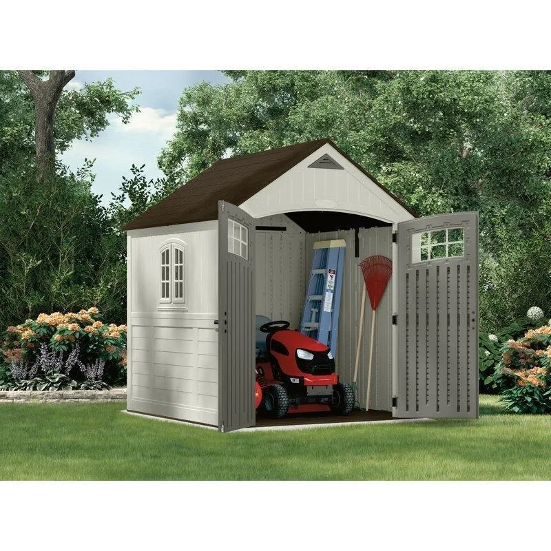 8′ wide x 7′ 4″ deep plastic storage shed