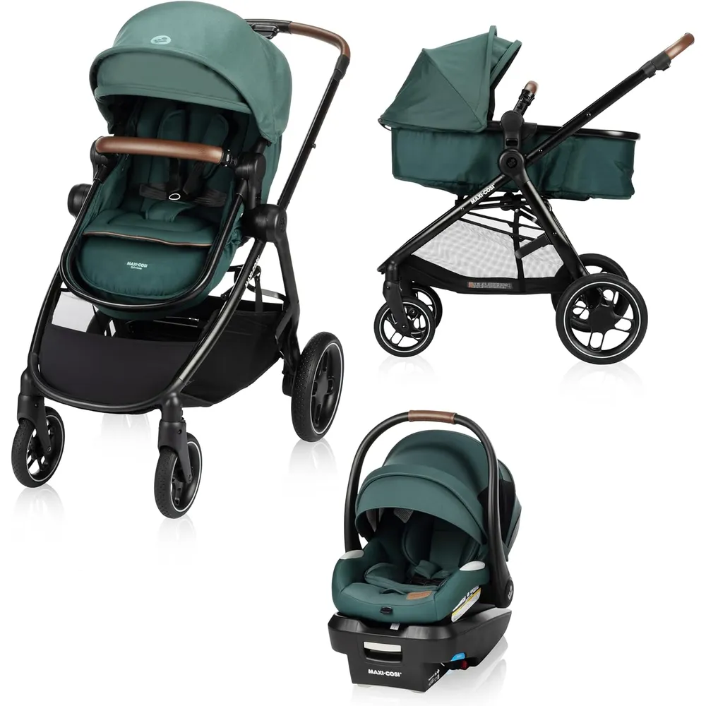 Maxi-Cosi New Generation Zelia Luxe 5-in-1 Modular Travel System, Carriage Mode, Reversible Toddler Seat, Mico Infant Car Seat (included), Enhanced All-Terrain Wheels, Use from Birth – Essential Green