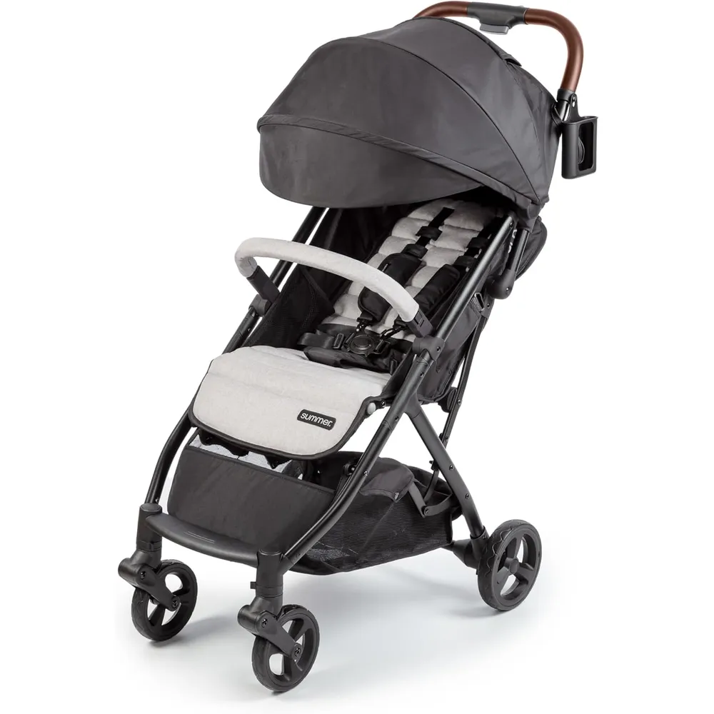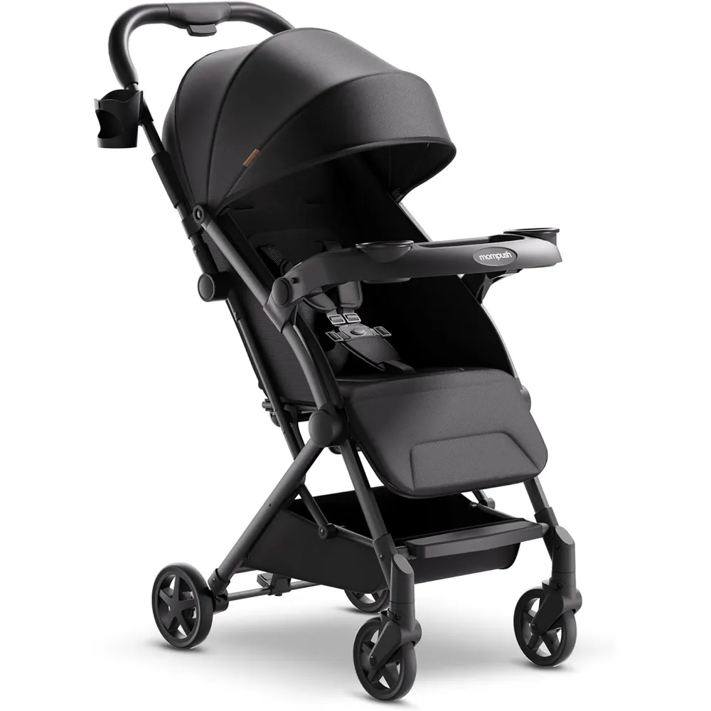 Mompush Lithe V2 Lightweight Stroller + Snack Tray, Ultra-Compact Fold & Airplane Ready Travel Stroller, Near Flat Recline Seat, Cup Holder, Raincover & Travelbag Included