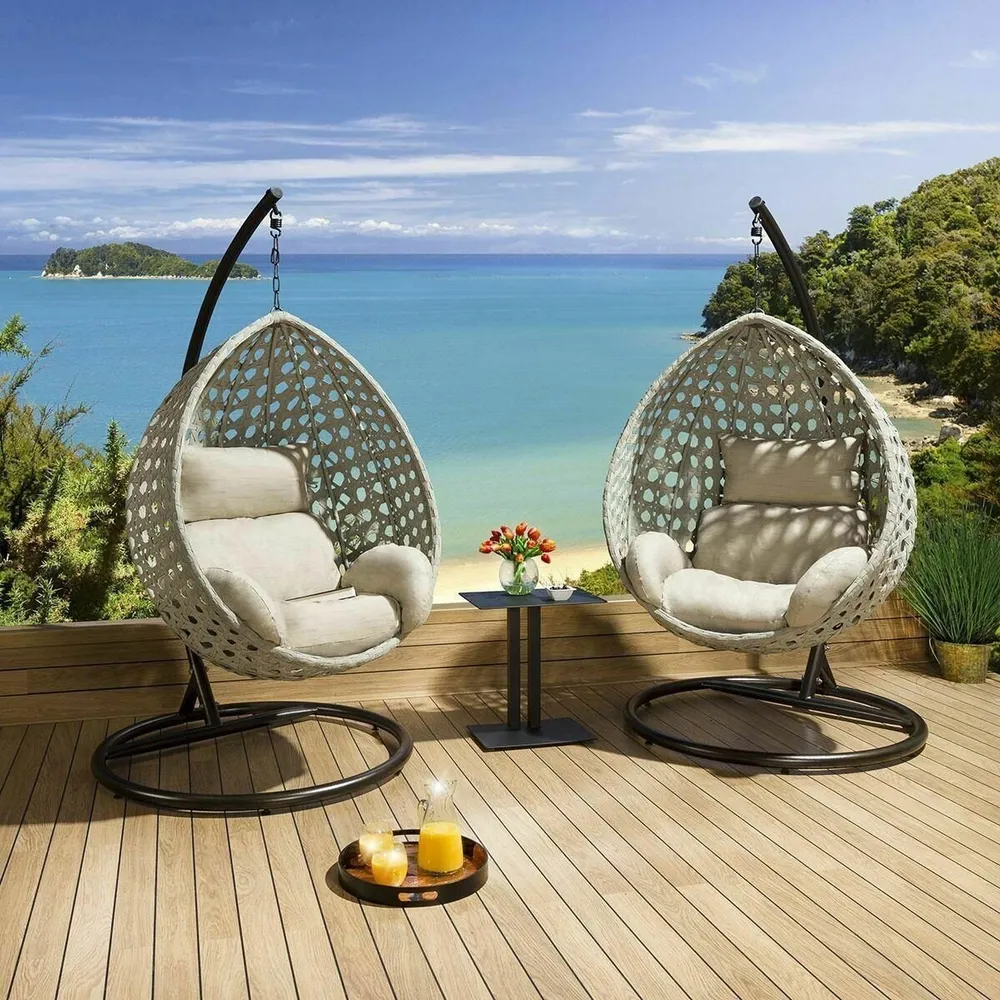 Luxury Extra Large Outdoor Hanging Pod Chairs Grey Rope Table