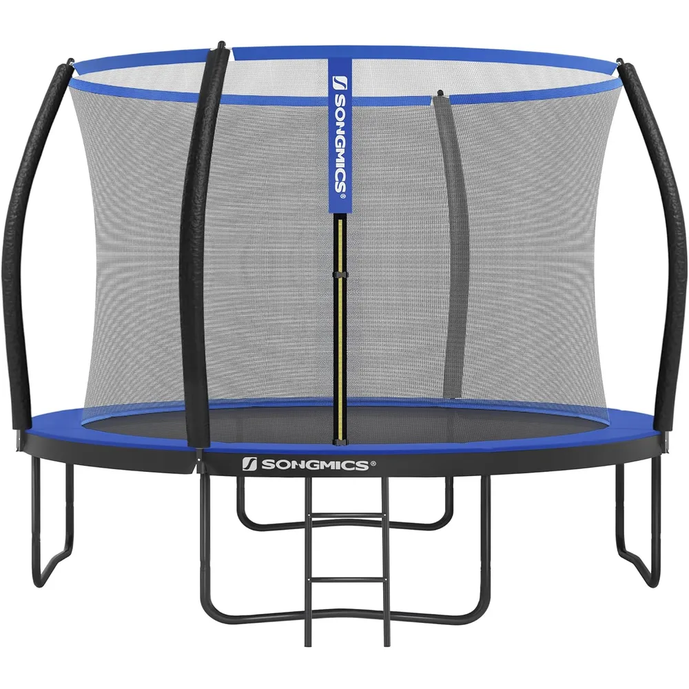 SONGMICS Trampolin Outdoor Ø 305 cm. rundes Gartentrampolin mit Randabdeckung. mit Sicherheitsnetz. mit Leiter und gepolsterten Stangen