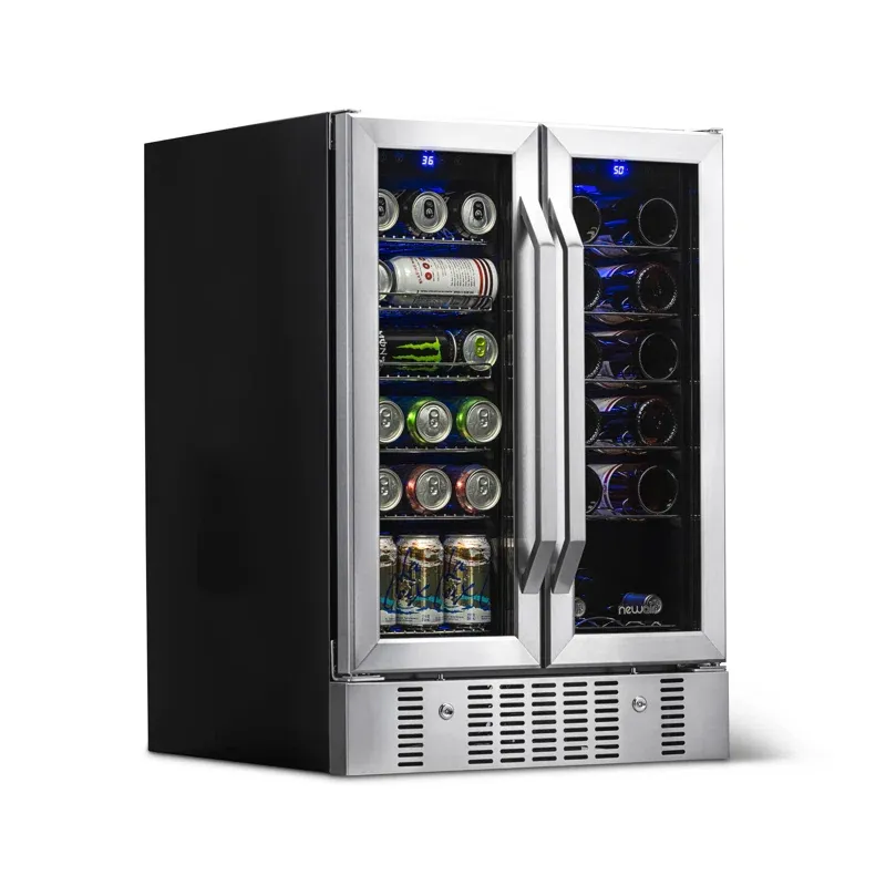 Newair 24” Built-in Dual Zone 18 Bottle and 58 Can Wine and Beverage Fridge in Stainless Steel