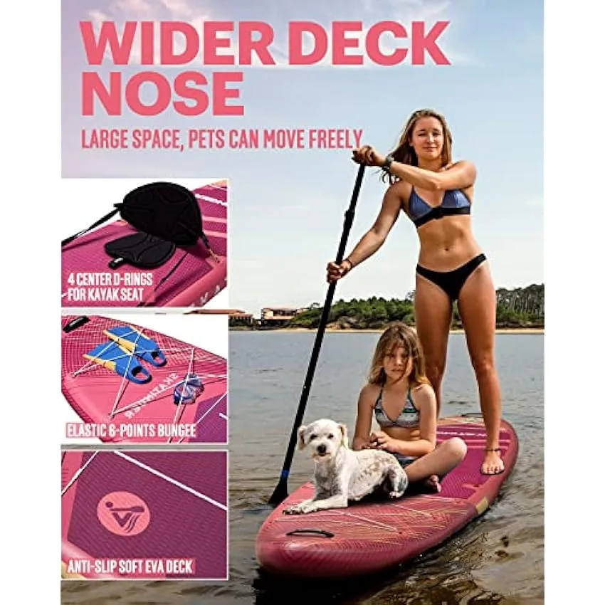 - 【𝟯𝟱” 𝗦𝗨𝗣𝗘𝗥 𝗪𝗜𝗗𝗘 & 𝗨𝗟𝗧𝗥𝗔 𝗦𝗧𝗔𝗕𝗟𝗘】Skatinger 11’6″ paddleboard features a 35″ wide platform(compared to typical 32″ boards), making it ideal for beginners, families, and activities like yoga or simply relaxing. It also offers ample space for a child or pet to join the fun without compromising balance.