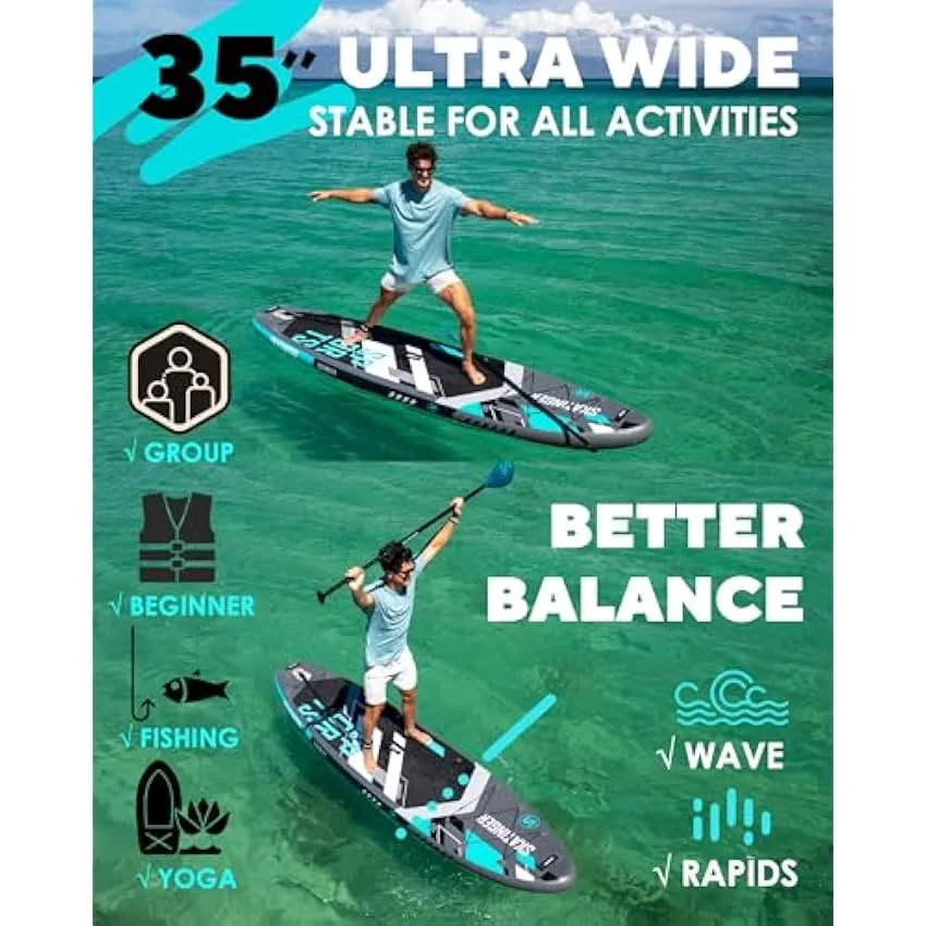 - γπ―π±” π¦π¨π£ππ₯ πͺπππ & π¨ππ§π₯π π¦π§ππππγSkatinger 11’6″ paddleboard features a 35″ wide platform(compared to typical 32″ boards), making it ideal for beginners, families, and activities like yoga or simply relaxing. It also offers ample space for a child or pet to join the fun without compromising balance.
