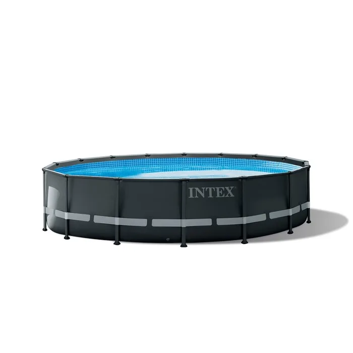 Enhance your backyard this summer with the Intex Ultra XTR™ Frame pool that features beautiful blue tile print and elegant graphite exterior. Have an amazing time with family and friends with the spacious pool. This top-of-the-line above ground pool combines high-quality with style offering ease of ownership so that your pool time is truly fun time. It comes with a 2-year warranty on pool liner, frame and filter pump.