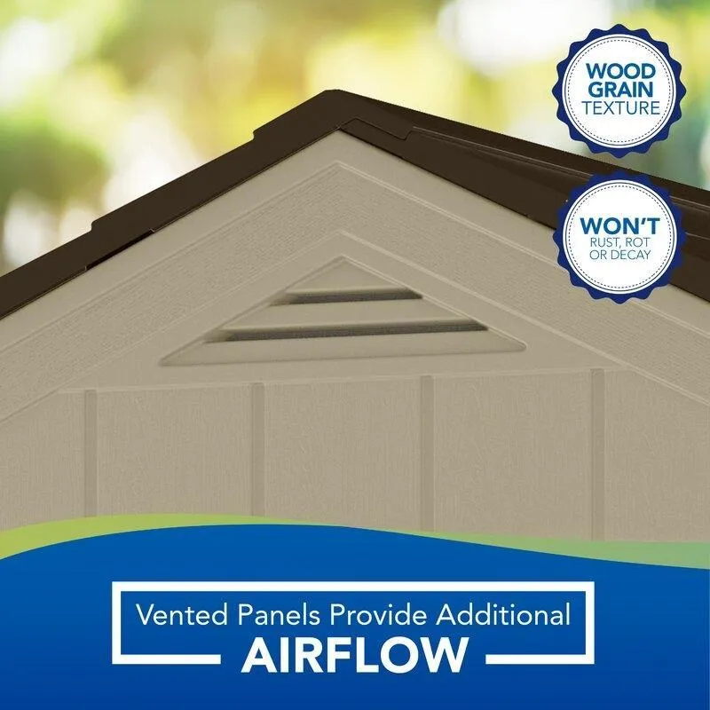Looking to beat the clutter in your outdoor space This 201 cu. ft. Outdoor Storage Shed is your best defense for organization in any season. The double-door entry and 6 ft. x 6 ft. size make it ideal for housing all of your larger equipment. Smaller items and everyday essentials can also be easily organized with the optional accessory kits, and the skylights and door windows bring in lots of natural light. Built for strength and stability, the shed features multi-wall resin and padlock-ready handles, which do double duty to protect your valuables in style.
