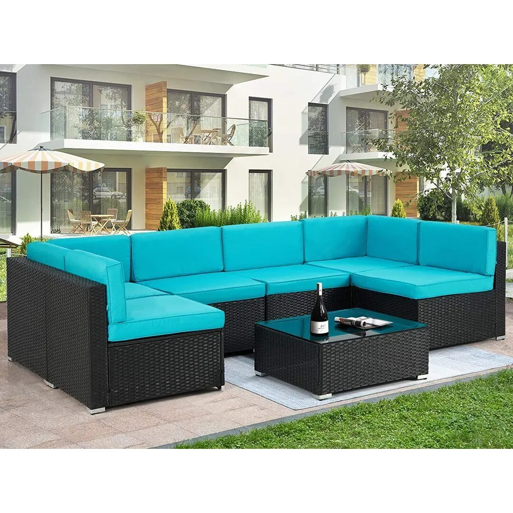 Packing Included(7 Pieces set).4 x Single armless chairs. 2 x Corner armchairs.1 x Coffee table with tempered glass top and 6 x seat&back cushions. Our 7 piece sectional wicker sofa set will arrive in multiple boxes with all necessary hardware and detailed instructions. Normally this sectional patio furniture set required 40-60 minutes to assembly by one person. What’s more. this outdoor furniture set have endless number of configurations. you can match and purchase freely as you need.