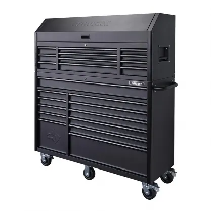 Raise your work to a whole new level with the innovative Husky 72 in. 18-Drawer Mobile Workbench with Adjustable-Height Top. The workbench has a revolutionary feature that allows you to adjust the height of the solid wood work surface according to your needs. A removable crank handle raises and lowers the top anywhere between 38 in. to 48 in. above the floor. This innovative design allows a better ergonomic standing position, which is known to help reduce strain on your body and joints. This rolling tool cabinet has heavier 19-Gauge steel. This workbench is 24 in. D, which is 6 in. D than most standard rolling tool cabinets, providing more usable storage space that is strong enough to support 3,000 lbs. and has 33,545 cu. in. capacity. The 1.2 in. thick, solid wood top is coated with polyurethane for added utility and durability. Charge your power tools with the built-in, 6-outlet, 2 USB power center. The 120 lbs. rated, soft-close drawer slides keep the drawers from accidentally opening or from slamming shut. Drawer liners are included to protect and keep your tools in place. The top long drawer and three bottom drawers are equipped, with double 120 lbs. soft closing drawer slides for increased weight capacity up to 240 lbs. For added security, this unit is fitted with a barrel key and lock system. This mobile work center has 6 large, 5 in. x 2 in. all swivel casters and a steel tubular side handle, which allow you to easily move around, even when fully loaded.