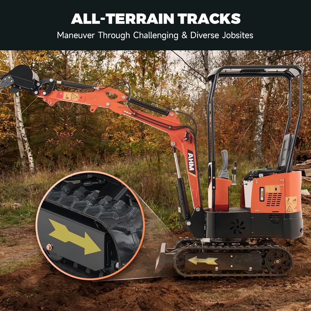 - Designed for Narrow Spaces: With a compact design and a 5.7 ft. maximum digging depth, this 1-ton mini excavator by AMH is tailor-made for construction in narrow lanes, alleys, backyards, gardens, and other tight spaces