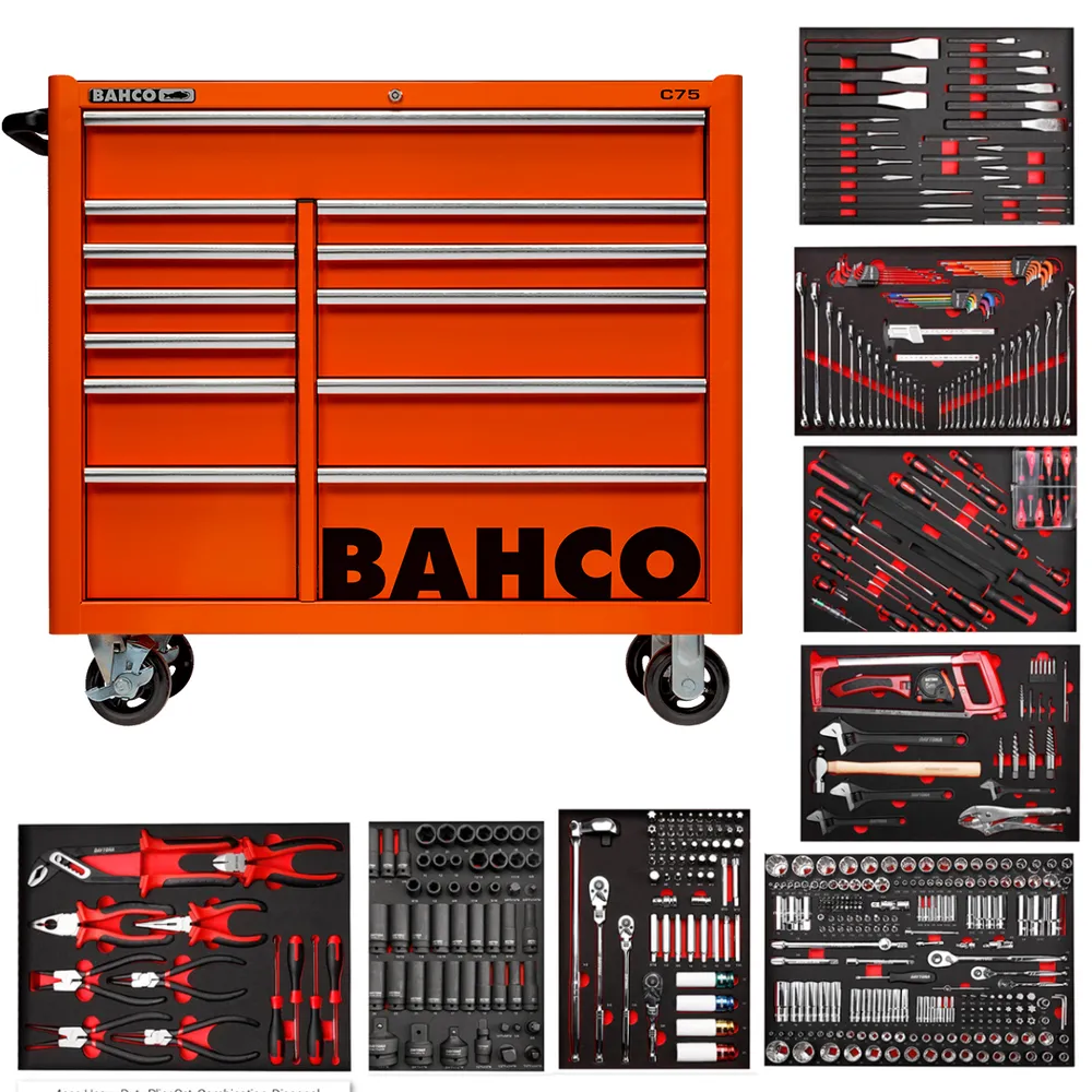 Each drawer is thoughtfully organized with premium Bahco and compatible professional tools — making it the ultimate workstation for mechanics, engineers, and tradesmen.