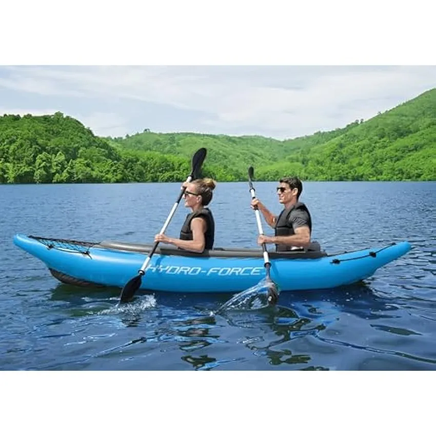 - GET OUTSIDE AND EXPLORE: Take your summer to the next level, The Hydro-Force Cove Champion X2 Inflatable Kayak Set drifts along the lake, river or ocean and can comfortably fit up to 2 adults or children (397 lbs weight capacity).