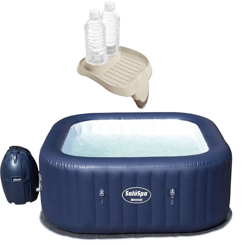 Bundle Includes: Bestway SaluSpa Hawaii AirJet 6-Person Portable Inflatable Round Spa Hot Tub bundled w/ PureSpa Attachable Cup Holder And Refreshment Tray