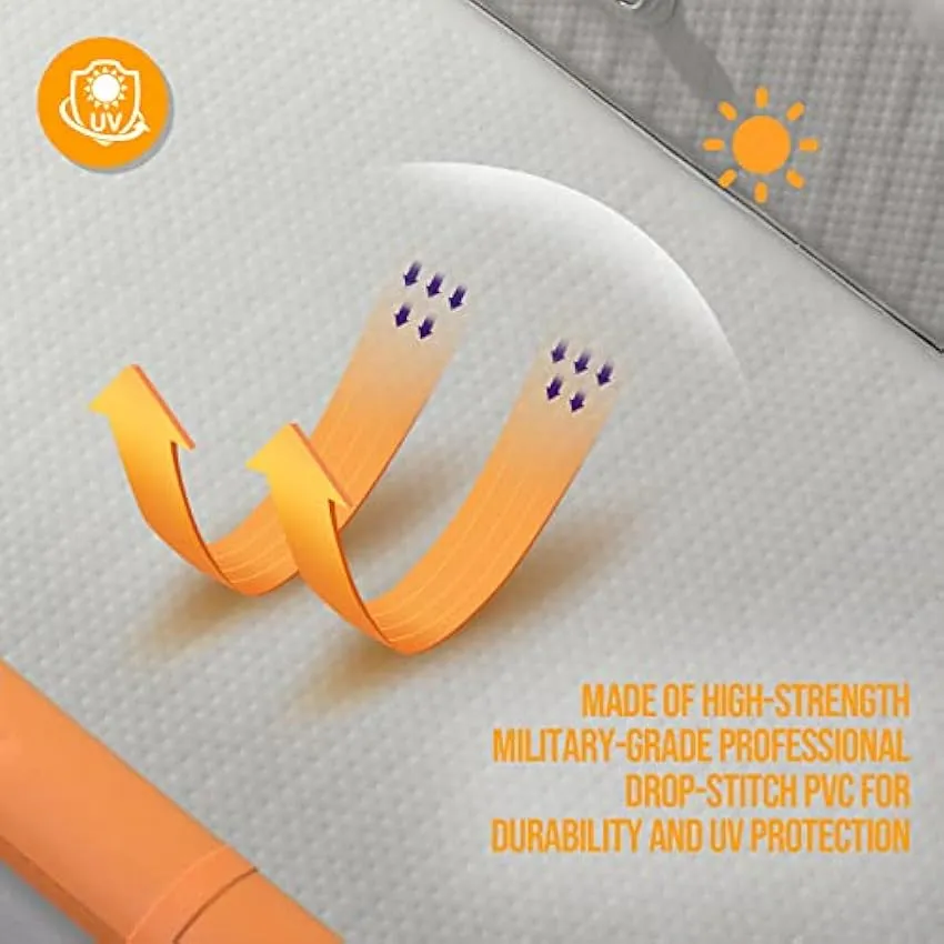 - 【Durable and Safe】 This kayak is constructed entirely of drop-stitch fabric, which is highly durable and puncture-resistant, making it ideal for use in challenging and rugged water conditions such as rocky rivers or rough waters