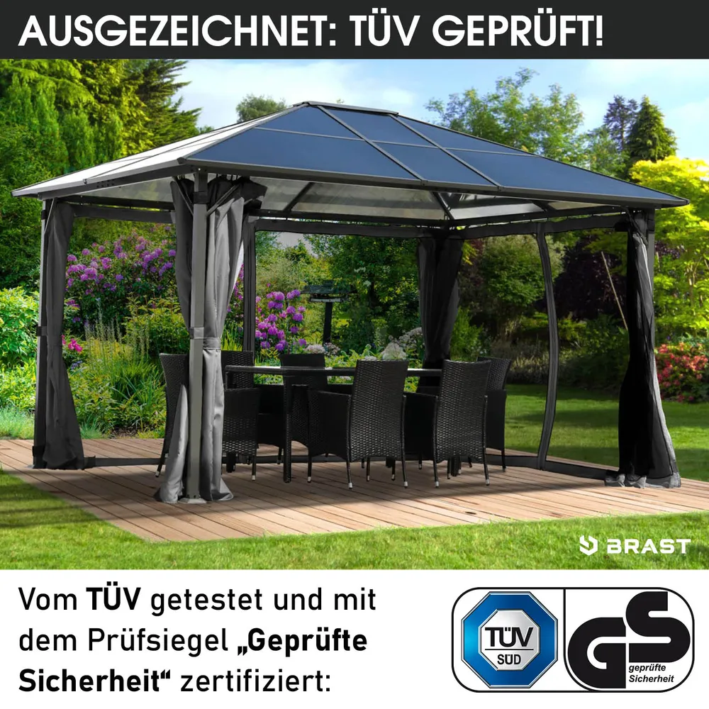 Unser BRAST Alu-Pavillon wurde vom TÜV eingehend geprüft und mit dem Siegel „Geprüfte Sicherheit“ ausgezeichnet: