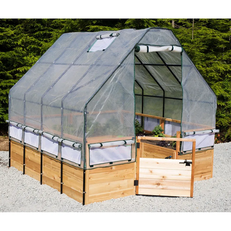 The greenhouse cover helps you start your garden early and protects your plants from frost. You can easily take off the greenhouse cover and framing in minutes. When the greenhouse frame and cover are installed, you can access the inside through a 30-inch wide by 78-inch tall doorway with closing zipper.