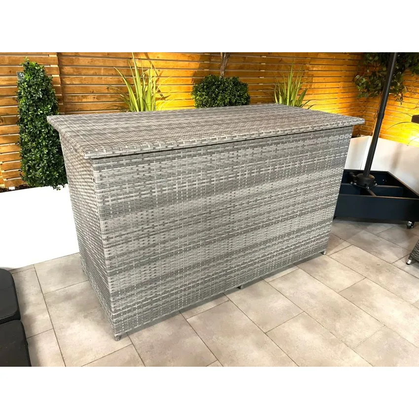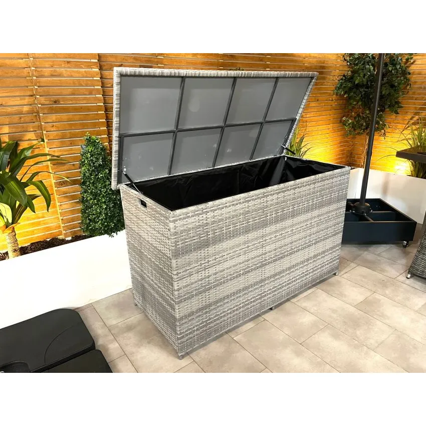 This Stone Grey Large Storage Box is crafted from a powder coated aluminium frame that can endure even the harshest weather. The synthetic rattan fabric is designed to be long lasting and is UV protected to ensure the grey colour remains year after year without fading.