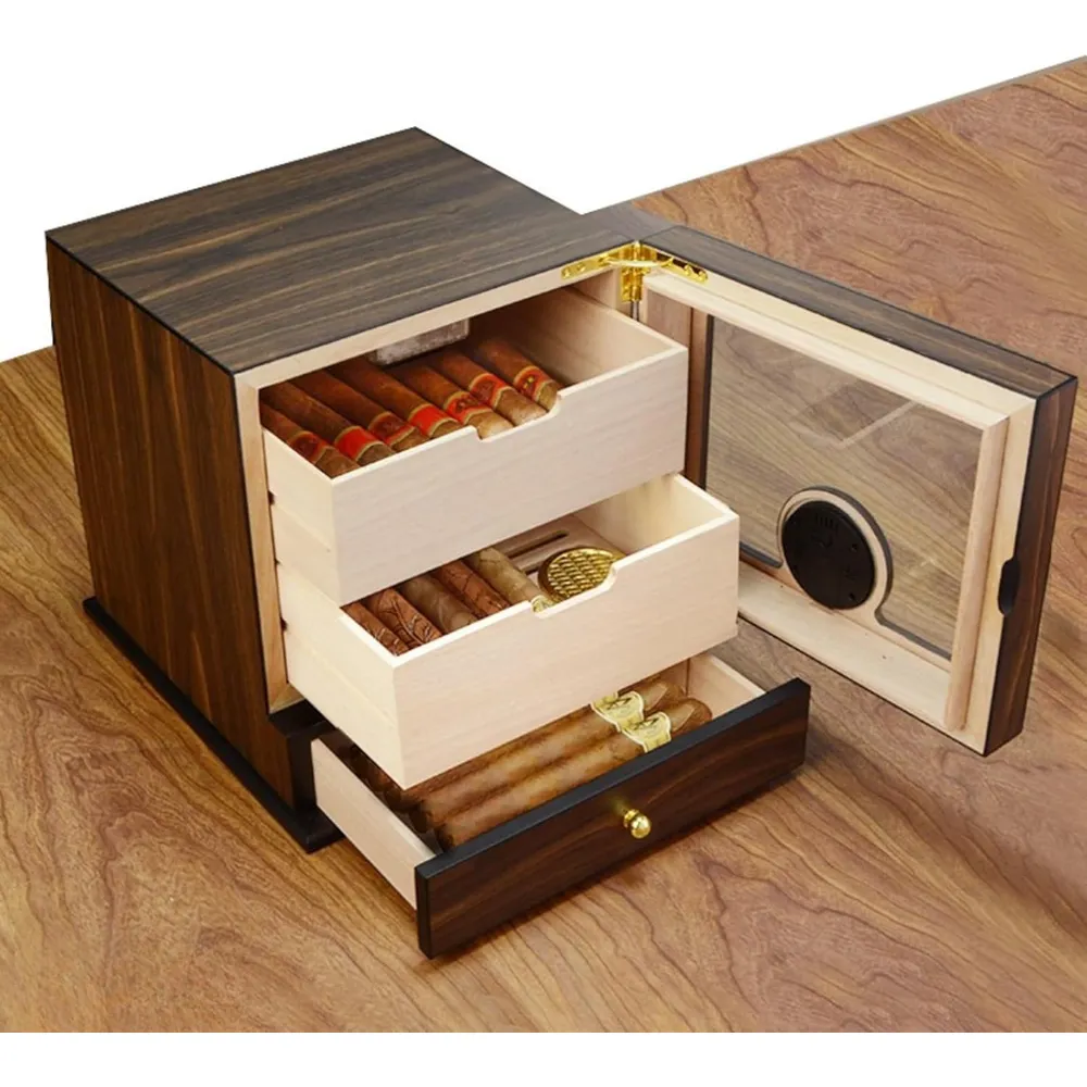 - Rational Internal Layout: As a small cigar cabinet, it has two drawers. This allows you to sort cigars by brand, type or storage duration. It stops them from being squashed and makes organizing and retrieving them a breeze. With a capacity of over 50 cigars, it can accommodate any cigar lover’s collection, whether they’re new to the hobby or an experienced collector.