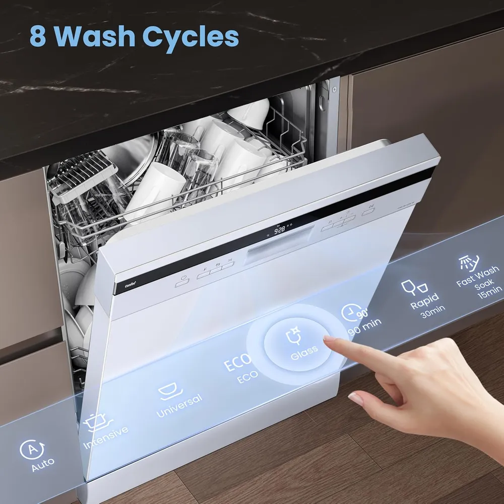 - 【Soil-Sensing Auto Wash】The COMFEE’ Smart Soil-Sensing function detects the level of food residue on your dishes and selects the optimal cycle required. This ensures sparkling clean dishes every time, whilst saving energy, time and money