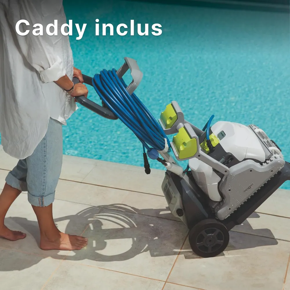 - Caddy included: Your robot comes with a storage cart for easy transport and storage, simplifying movement between the pool and storage space.