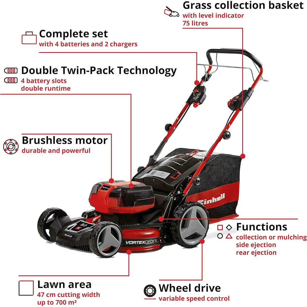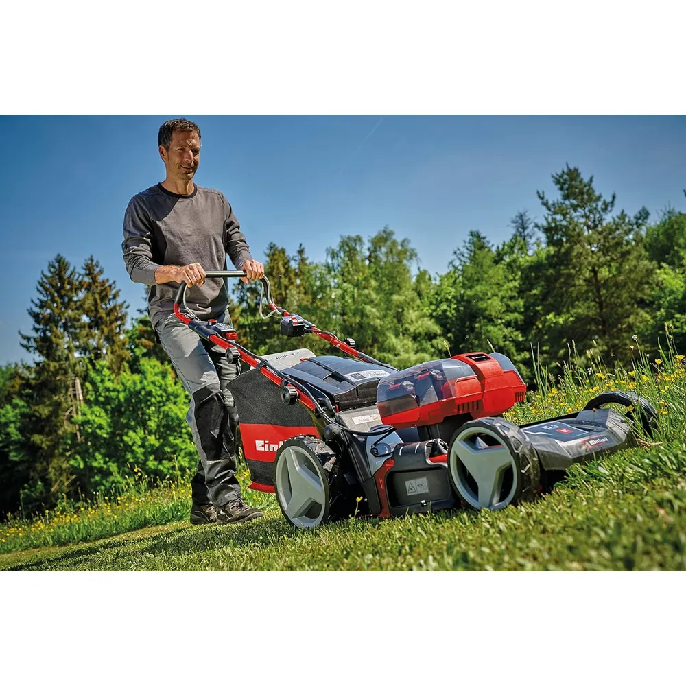 SUPERIOR PERFORMANCE – With a brushless electric motor this grass cutter machine powerfully tackles even overgrown lawns without any mechanical wear on the motor. The lawn-friendly large wheels minimise impact to the grass, handle uneven ground and help achieve precise results close to the lawn edge