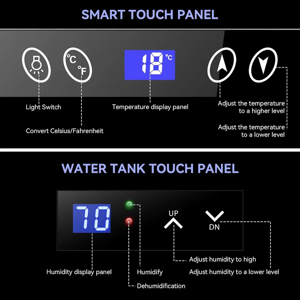 - Smart Controls: Easily adjust the temperature from 53°F to 65°F (degrees Fahrenheit and Celsius) with a touch of the digital display. With 60%-80% humidity regulation, your collection is kept at a consistent, optimal temperature for optimal flavor. The sealed stainless steel frame and glass door are both visible and insulated, allowing you to observe the condition of your cigars without opening the humidor, maintaining the humidity inside.