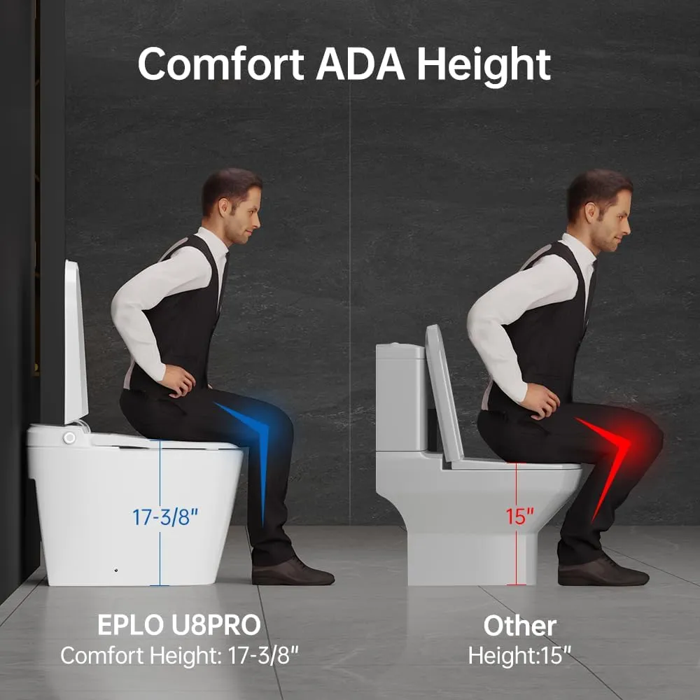 - 【Tank&Pump Toiet】Features a hidden water tank that saves space while providing reliable and stable flushing performance. The powerful pump assists in delivering peak flush efficiency, even in homes with low water pressure. Say goodbye to clogs and hello to effortless flushing.