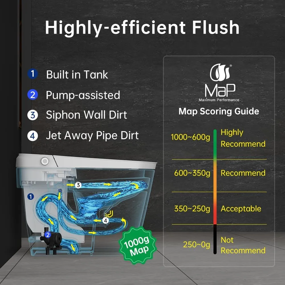 - 【Powerful Flush Toilet】Best MaP flush performance score at 1000 Grams—far exceeding conventional standards. This exceptional flushing ability not only ensures a clean and efficient bathroom experience but also excels in water conservation.