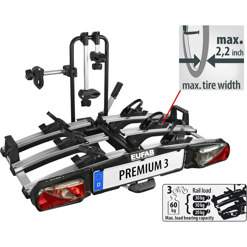 - Max. Tyre width in the rail: up to 5.6 cm.
