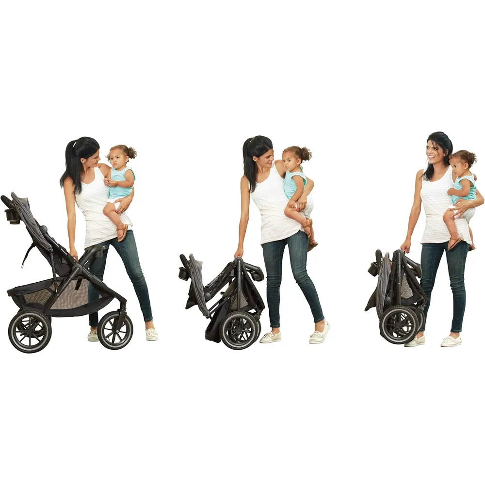 - Crossover versatility: lightweight and fully-featured for everyday strolls; large, all-terrain tires and front-wheel swivel lock for jogging