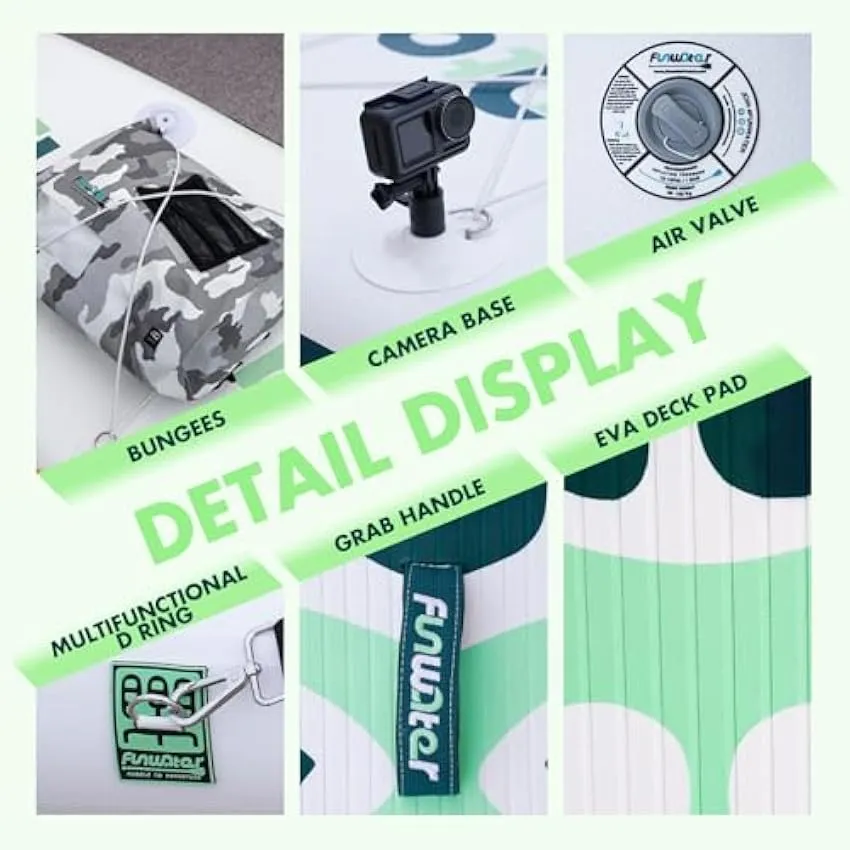 - Funwater’s unique ergonomic handle design allows you to inflate your paddle more easily in a shorter time. The sensitive barometer ensures that you can read the sup inflation pressure value (12-15psi) at any time. The multifunctional elastic string can tightly fix any objects placed on the inflatable paddleboard. The multipurpose and ultra-large backpack can help you easily carry the paddle to any of your dream places.