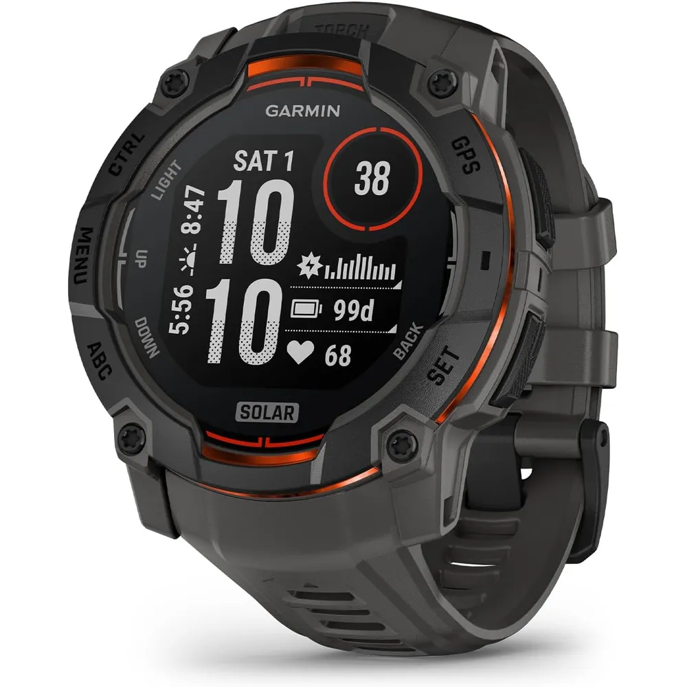 - Lead the mission with this rugged GPS smartwatch, featuring solar charging for unlimited battery life in smartwatch mode (assumes all-day wear with 3 hours per day outside in 50,000 lux conditions)