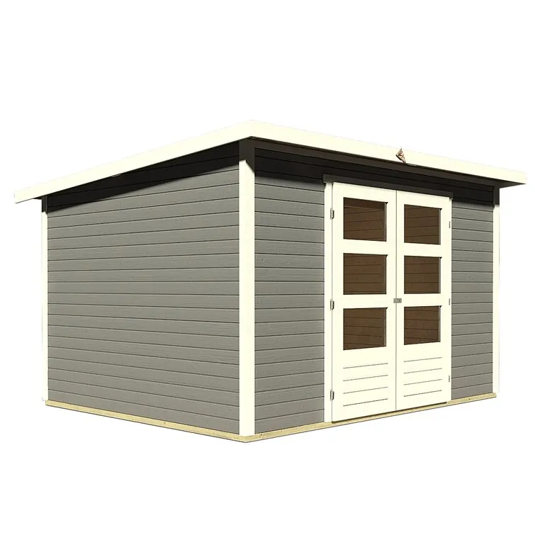 Der Werkzeugschuppen wird aus 19 mm starken Wandbrettern aus nordischer Fichte im Steck- und Schraubsystem gefertigt, was einen einfachen Aufbau ermöglicht. Das Pultdach wird aus Dachplatten hergestellt. Die Grundfläche beträgt 7,28 m² mit einem umbauten Raum von 13,1 cm. Mit einer Seitenhöhe von 172 cm und einer Firsthöhe von 197 cm bietet der Werkzeugschuppen eine optimale Raumausnutzung. Der Werkzeugschuppen hat ohne Anbauten ein Grundmaß von 301 cm x 242 cm. Bodenbalken bieten Schutz von unten und werden unter das Gartenhaus gelegt. Durch die Kesseldruckimprägnierung der Bodenbalken sind sie bereits vor Witterungseinflüssen und holzzersetzenden Pilzen geschützt. Die praktische und vormontierte Tür mit ihren großzügigen Abmessungen und dem massiven Holzrahmen sorgt für einen einfachen Zugang zum Gartenhaus und sichert den Inhalt effektiv vor unbefugtem Zugriff. Die Verglasung der Lichtausschnitte ermöglicht einen großzügigen Tageslichteinfall.