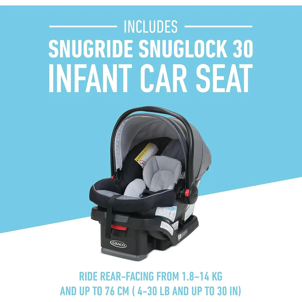 - Includes Graco’s SnugRide SnugLock 35 Lite infant car seat, for rear-facing infants from 1.8-16 kg (4-35 lb); Simply remove seat pad and click car seat directly into stroller frame in one-step