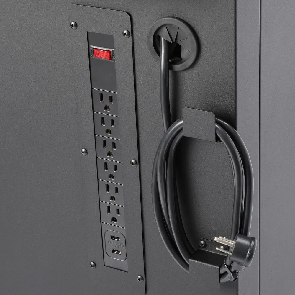 - 6-outlet plus 2 USB sockets power center built into side wall