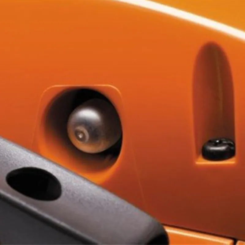 Damit sie trotz der starken Leistung sicher mit der Husqvarna 445 Mark II arbeiten, beachteten die Entwickler bei diesem Gerät auch Aspekte der Unfallverhütung. Von besonderer Bedeutung ist dabei die trägheitsausgelöste Kettenbremse, die zu einem sofortigen Stillstand des Geräts führt.