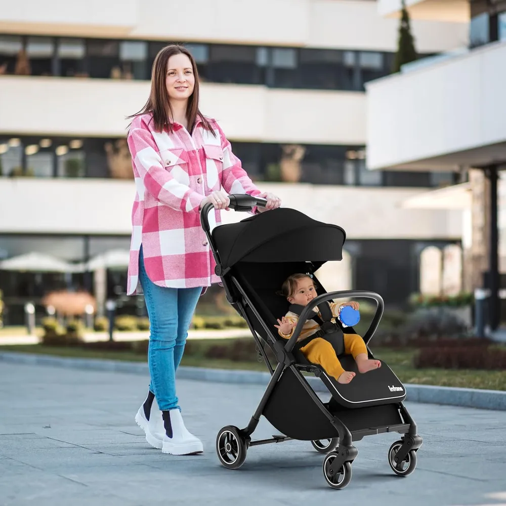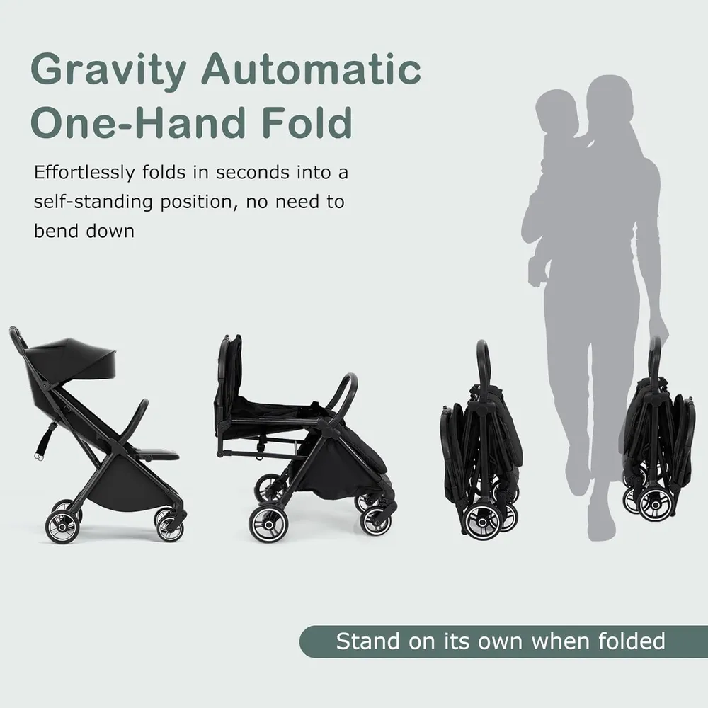 - 👶Gravity Folding Design: INFANS portable stroller that stand on it’s own when folded. Parents only need to press the folding button with one hand, the stroller can quickly fold up in one seconds and stand on its own, protect the parent’s waist from bending down to pick up the stroller.