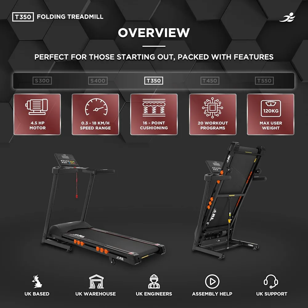 - 【Comfortable and Durable Design】 The 16-point cushion deck absorption system minimises joint impact, providing a smooth and comfortable running experience. The spacious running area measures 132 cm in length and 41 cm in width, supporting a maximum user weight of 120 kg (18.89 stone).
