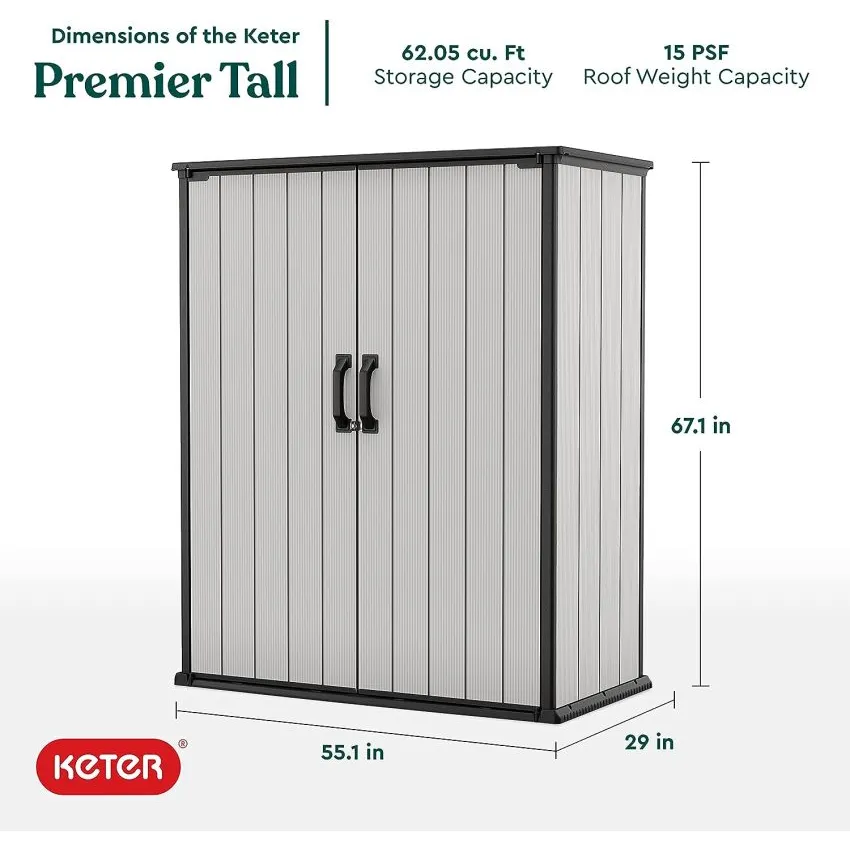 The Premier Tall’s durable construction is what makes it stand out from other storage shed on the market. While most manufacturers build their sheds with wood, the Keter Premier Tall is crafted from heavy duty resin. It’s an extremely durable material that holds up better than wood. You won’t ever have to worry about water damage or fading from the sun. It won’t peel or crack under years of sunlight unlike traditional materials.