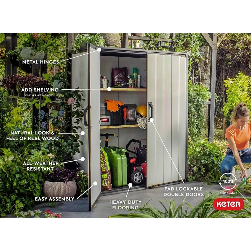 Weather-resistant polypropylene resin construction prevents rusting, peeling, fading, and denting – unlike real wood. Made with 100% recyclable materials, at Keter, sustainable and durable solutions are at the core of what we do.