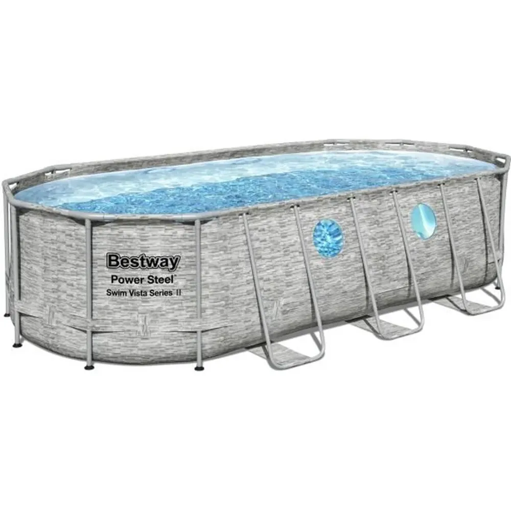 Kit Piscine hors sol – BESTWAY – Power Steel – 549 x 274 x 122 cm – Ovale (Avec pompe de filtration, échelle, bâche)
